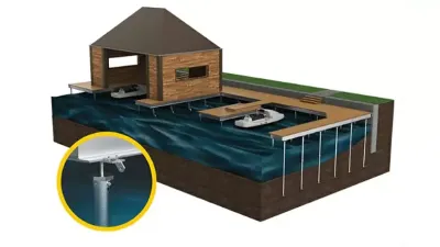 For those seeking a reliable alternative to wood piles, Better Screw Co's galvanized steel screw piles are the perfect choice for supporting docks and boathouses. Our helical piles are engineered to provide optimal strength, safety, and durability, thanks to their superior engineering and corrosion resistance. They can be anchored deep in the ground of waterways to support most types of docks and boathouses.